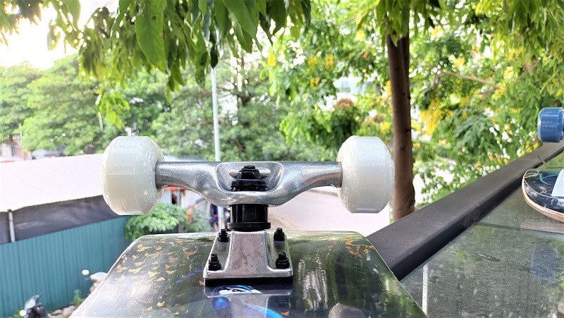 Màu sắc bánh xe phối hợp hài hòa với tổng thể ván, tạo nên vẻ ngoài thống nhất và bắt mắt. Cấu trúc bánh xe mềm mại nhưng đàn hồi tốt, giúp giảm chấn khi trượt trên đường gồ ghề, bảo vệ người chơi khỏi những cú va đập mạnh. Lắp bánh với trục ván chính xác, tạo sự cân bằng tuyệt đối, giúp việc kiểm soát ván trở nên dễ dàng hơn.