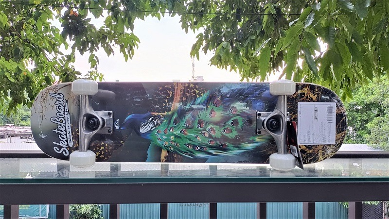Họa tiết chim công được in sắc nét, sống động, không phai màu theo thời gian, tạo điểm nhấn cá tính cho người sở hữu. Form ván được thiết kế bo cong tinh tế, tăng cường độ linh hoạt khi chuyển hướng hoặc thực hiện kỹ thuật trượt lướt. Kích thước mặt ván vừa phải, phù hợp cho cả trẻ em và người lớn, mang lại cảm giác thoải mái khi sử dụng.