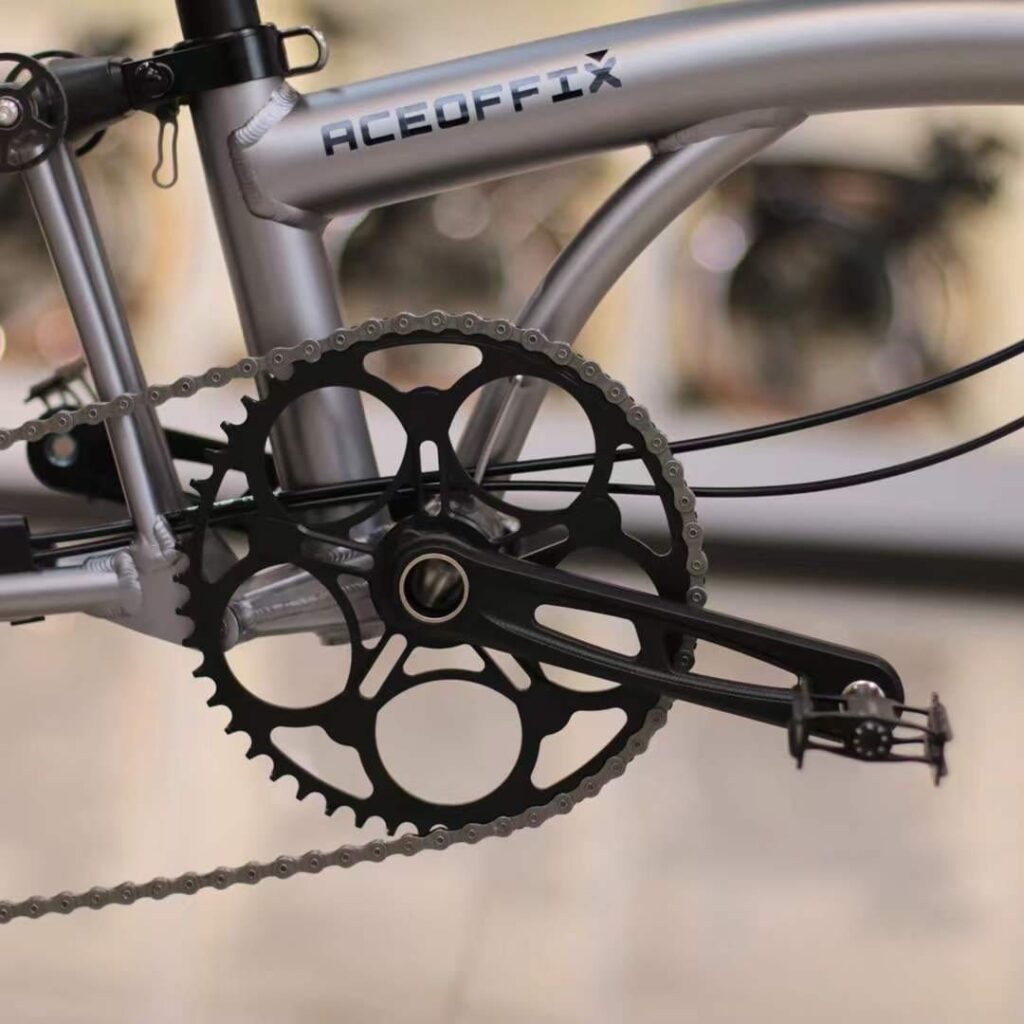 Đùi đĩa trên Aceoffix C5 được chế tác từ hợp kim chắc chắn, truyền lực trực tiếp từ bàn đạp đến bánh xe, giúp người dùng tiết kiệm sức lực khi vận hành. Thiết kế tối ưu đảm bảo đạp nhẹ nhàng nhưng vẫn mạnh mẽ, phù hợp với nhiều loại địa hình khác nhau. Đùi đĩa hoạt động ổn định, giảm tiếng kêu và hạn chế ma sát, đem lại cảm giác lái êm ái.