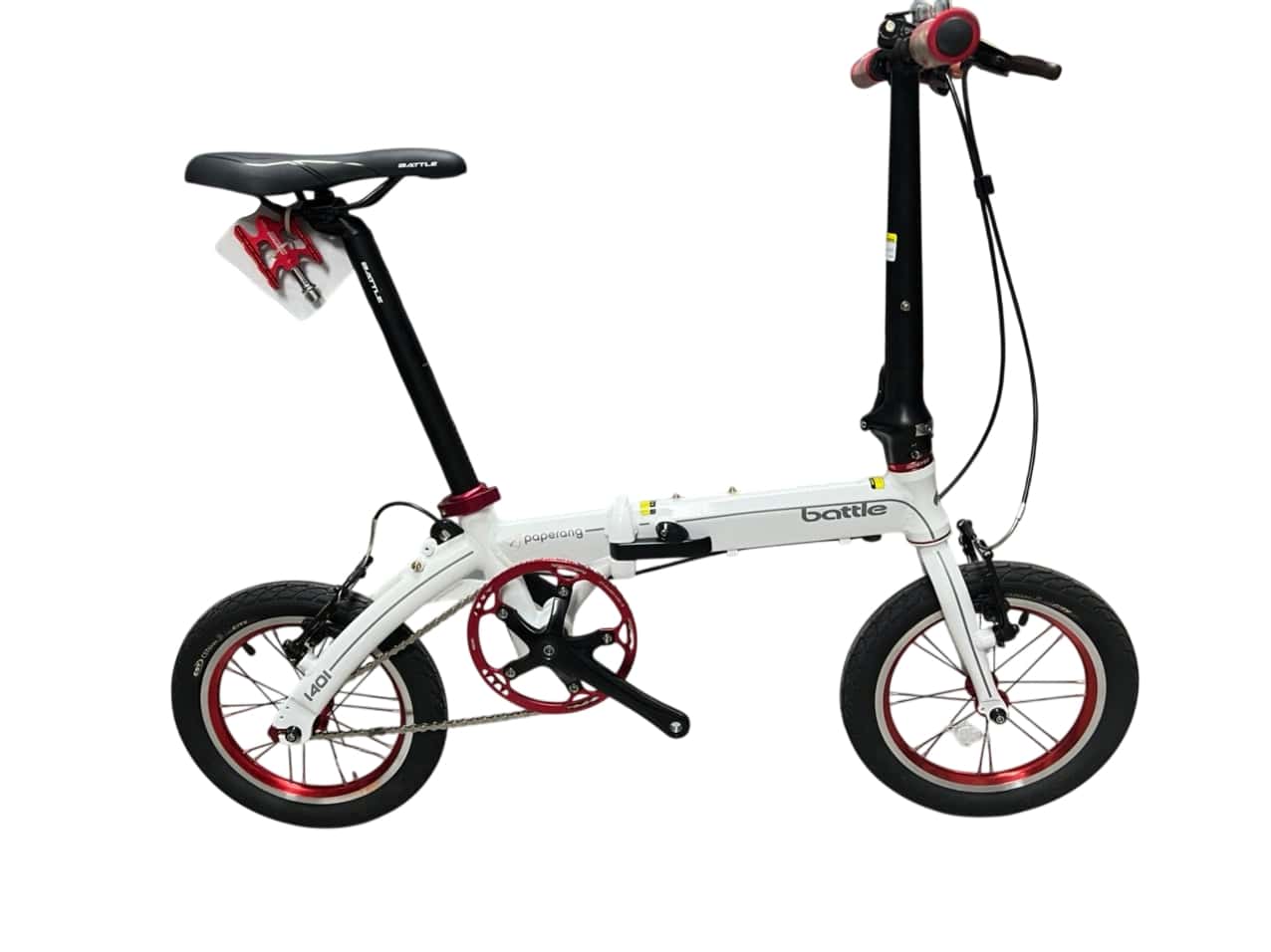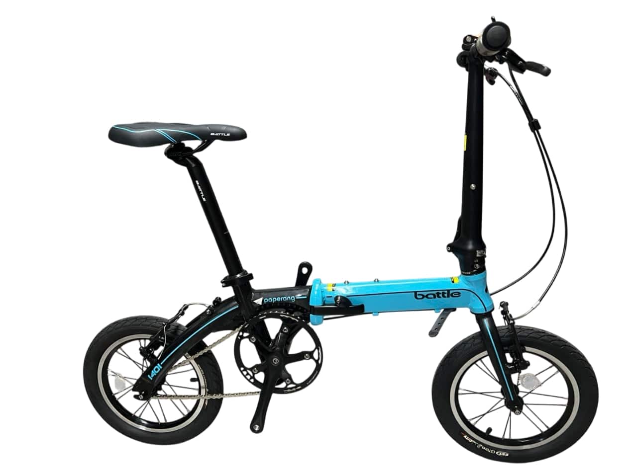 Xe đạp gấp Battle Paperang được thiết kế như một trợ thủ cơ động dành cho người thường xuyên dịch chuyển trong đô thị chật hẹp. Khung xe chế tạo chắc khỏe, chịu tải tốt nhưng vẫn giữ trọng lượng hợp lý để bạn dễ dàng nhấc lên, xoay trở hoặc mang theo khi cần. Điểm nhấn lớn nằm ở cơ cấu gập thu gọn nhanh, hoạt động gọn gàng và không vướng víu, giúp chiếc xe chuyển sang trạng thái mang vác chỉ trong một nhịp bấm khóa.