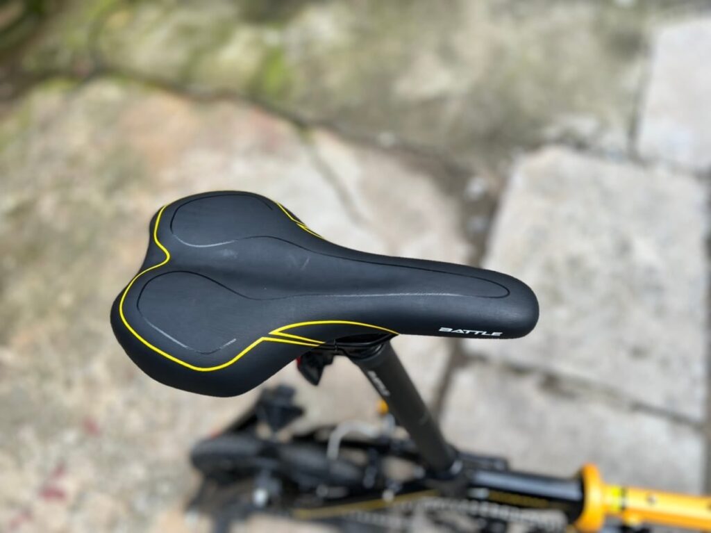 Yên xe Battle Paperang được thiết kế theo tiêu chuẩn công thái học, vừa vặn với vóc dáng người dùng, giúp giảm mệt mỏi trong các chuyến đi dài. Phần đệm yên sử dụng chất liệu mềm nhưng đàn hồi, tăng khả năng hấp thụ xung lực từ mặt đường. Bề mặt yên chống trượt, giữ vị trí ổn định khi đạp xe, đồng thời dễ dàng vệ sinh sau mỗi chuyến đi.