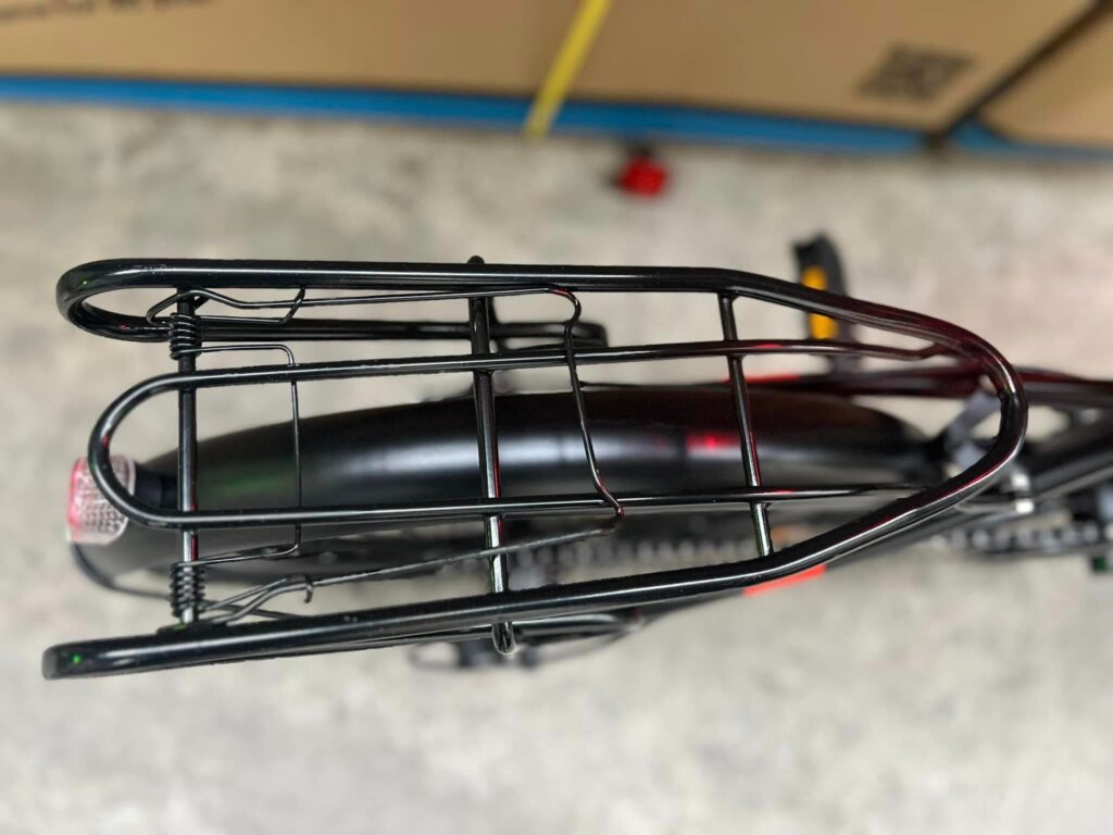 Khi gấp lại, baga vẫn giữ được sự gọn gàng, không gây vướng víu hay cồng kềnh. Đây là điểm quan trọng, giúp Brave Will T700 giữ được ưu thế của một chiếc xe đạp gấp đúng nghĩa. Với sự hỗ trợ của baga, người dùng có thể giảm bớt việc đeo balo trên lưng, mang lại cảm giác thoải mái hơn khi di chuyển quãng đường dài. Đây là chi tiết nhỏ nhưng mang lại giá trị sử dụng rõ rệt.