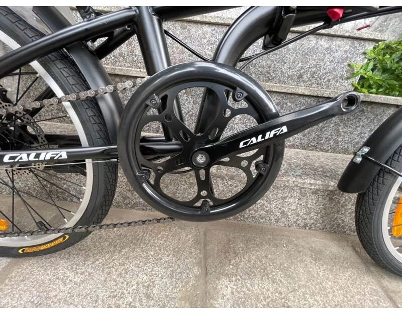 Bộ chuyển động của xe đạp gấp Califa CG20 được thiết kế tối ưu cho nhu cầu đi lại hàng ngày. Hệ thống truyền lực vận hành mượt mà, giúp người dùng đạp nhẹ và đều chân hơn khi di chuyển trong phố đông hoặc đoạn đường ngắn.