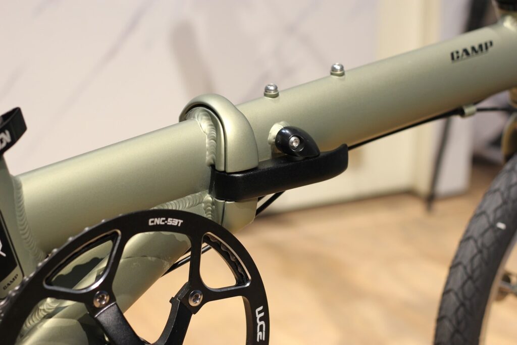 Các mối hàn được xử lý gọn gàng, tăng tính thẩm mỹ đồng thời giảm thiểu nguy cơ nứt gãy trong quá trình sử dụng lâu dài. Thiết kế khung gấp không chỉ tập trung vào khả năng thu gọn mà còn giữ được độ cứng cần thiết khi mở xe, giúp người đạp luôn cảm thấy chắc tay và an tâm. Đây chính là yếu tố quan trọng giúp Camp Hazy đáp ứng tốt nhu cầu đi lại hằng ngày.