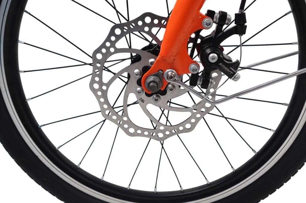 Xe đạp gấp Catani High End được trang bị hệ thống phanh đĩa cơ cao cấp, đảm bảo khả năng dừng xe an toàn trong mọi tình huống. Phanh đĩa cơ không bị ảnh hưởng bởi thời tiết mưa nắng, giữ lực phanh ổn định và hiệu quả trên nhiều loại địa hình. Tay phanh tích hợp trên ghi đông dễ dàng thao tác, giúp người lái kiểm soát tốc độ chính xác, giảm rủi ro tai nạn.