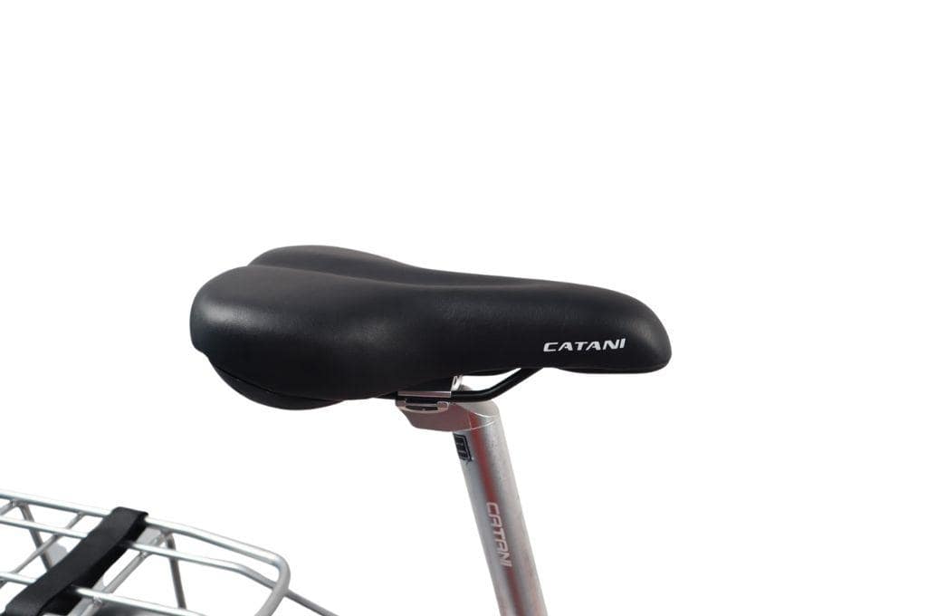 Yên xe Catani High End được thiết kế êm ái, kết hợp lớp đệm dày và bọc da cao cấp, mang lại cảm giác dễ chịu ngay cả khi di chuyển lâu. Kiểu dáng yên ôm sát cơ thể, giảm áp lực lên hông và mông, giúp hạn chế mỏi lưng khi đi đường dài.