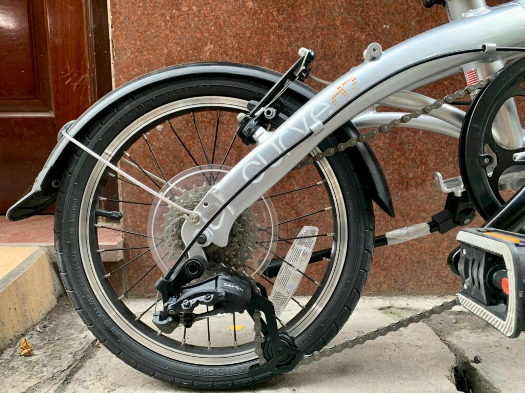 Khả năng giảm xóc vừa phải giúp người dùng cảm nhận sự êm ái, hạn chế rung lắc khi đi qua đoạn đường gồ ghề. Ngoài ra, bánh xe được thiết kế dễ dàng tháo lắp, thuận tiện cho việc vệ sinh, thay lốp hay mang theo khi di chuyển. Đây là yếu tố quan trọng giúp Curve D7 16 trở thành chiếc xe đạp gấp đáng tin cậy, an toàn và tiện dụng.