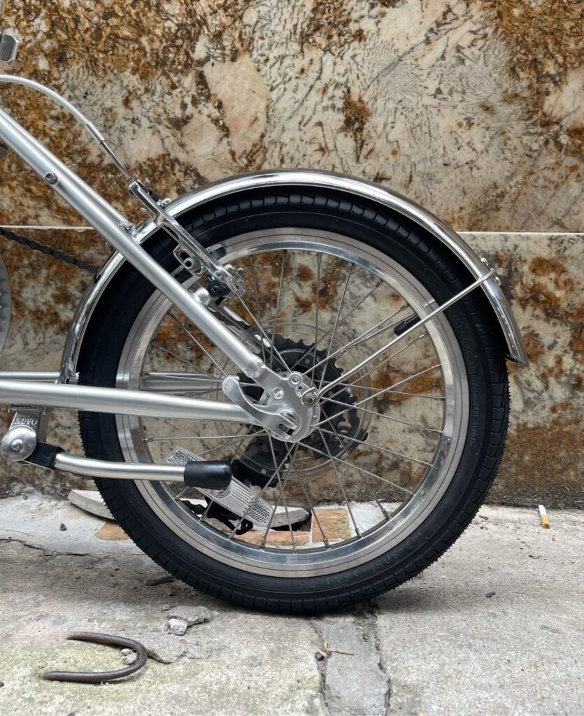 Lốp xe có độ bám đường phù hợp, hỗ trợ di chuyển an toàn trong điều kiện giao thông đô thị. Khi cần mang xe lên cầu thang, thang máy hoặc cốp xe hơi, kích thước bánh nhỏ giúp thao tác trở nên nhẹ nhàng hơn. Bánh xe cũng góp phần làm giảm tổng trọng lượng, tăng tính linh động cho toàn bộ xe. Đây là yếu tố khiến D-Zero 16 đặc biệt được ưa chuộng trong môi trường thành phố.
