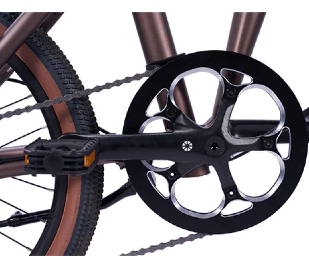 Đùi đĩa của Hemingway GR được gia công từ hợp kim nhôm cao cấp, với răng đĩa chính xác, giúp lực đạp truyền trực tiếp và hiệu quả. Thiết kế này giảm mệt mỏi cho người lái, đặc biệt khi đi đường dài hoặc leo dốc. Các chi tiết được gia công tinh xảo, hạn chế ma sát và tiếng ồn, đảm bảo vận hành trơn tru.