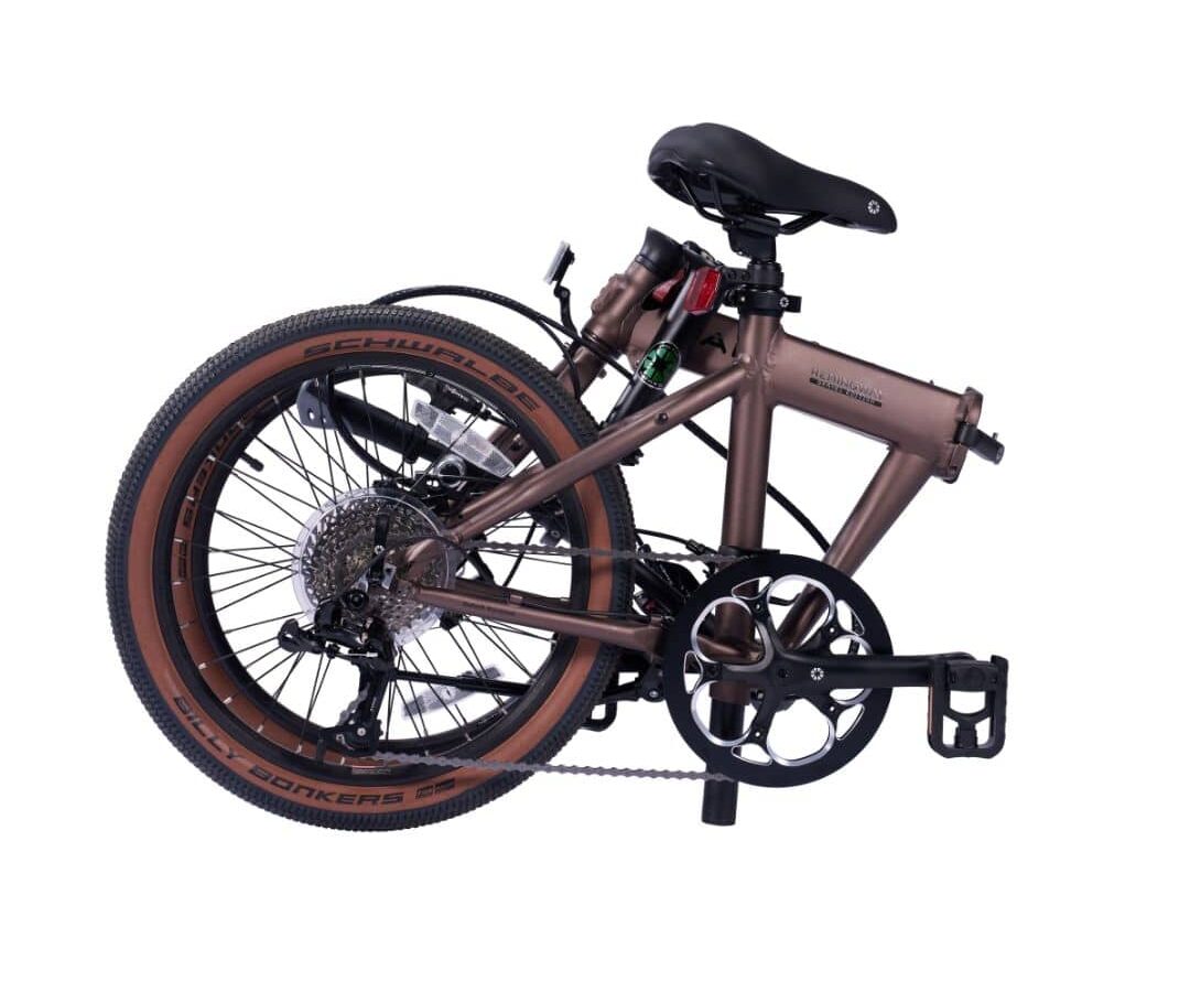 Điểm nhấn đặc trưng của Hemingway GR 20 inch là cơ chế gấp gọn cực kỳ linh hoạt. Chỉ vài thao tác đơn giản, xe có thể thu gọn trong một khối nhỏ gọn, thuận tiện mang theo trên xe công cộng hoặc để trong căn hộ nhỏ. Cơ chế khóa gấp thông minh giữ xe cố định, tránh tình trạng bung ra ngoài ý muốn.