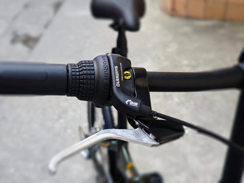 Tay đề của Dahon Yuki KT610 được thiết kế theo công nghệ hiện đại, giúp người dùng chuyển số nhanh chóng chỉ với một cú vặn nhẹ. Tay đề có kích thước vừa vặn, cầm nắm chắc chắn, phù hợp với mọi kích cỡ tay. Hệ thống cơ cấu bên trong đảm bảo độ chính xác tuyệt đối khi thay đổi tốc độ, tránh hiện tượng trượt líp hay nhảy xích.