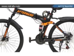 Khung sườn của xe đạp gấp địa hình Afterward được thiết kế theo hướng cứng cáp, chịu lực tốt và tối ưu cho cả di chuyển đô thị lẫn địa hình phức tạp. Vật liệu khung thường được lựa chọn kỹ lưỡng, đảm bảo độ bền cao nhưng vẫn giữ được trọng lượng hợp lý để không gây nặng nề khi sử dụng lâu dài.