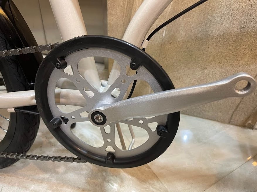 Đùi đĩa trên Dkan Ford 20 inch được thiết kế với kết cấu cứng cáp, chịu lực tốt trong quá trình đạp liên tục. Chất liệu sử dụng giúp hạn chế cong vênh, đảm bảo độ ổn định ngay cả khi người dùng đạp mạnh hoặc chở thêm đồ nhẹ. Kích thước đùi đĩa được tính toán phù hợp với bánh 20 inch, giúp vòng đạp tròn đều và không gây hụt lực.