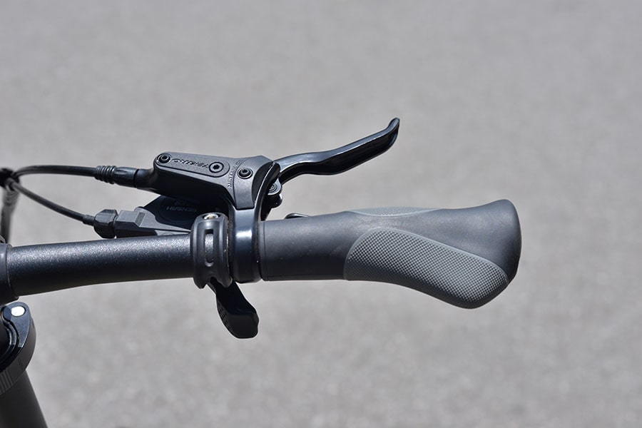 Tay đề trên xe đạp gấp Ecosmo Z9 được bố trí khoa học, nằm gọn trong tầm tay người lái, giúp việc chuyển số trở nên trực quan và dễ thao tác. Khi thay đổi tốc độ, tay đề phản hồi rõ ràng, không bị trễ hay cứng tay. Điều này đặc biệt hữu ích khi di chuyển trong phố đông, cần thay đổi nhịp đạp liên tục.