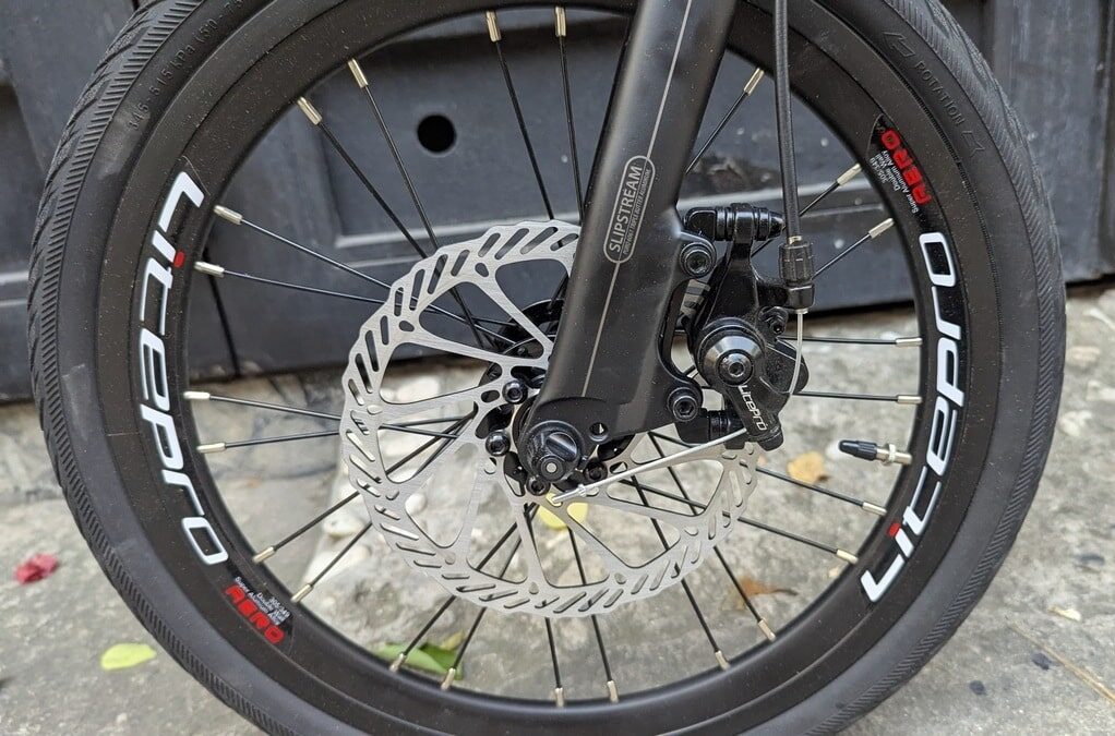 Xe đạp gấp Fnhon Zephyr được trang bị hệ thống phanh đĩa cho cả bánh trước và bánh sau, mang lại khả năng kiểm soát tốc độ ổn định trong nhiều điều kiện di chuyển khác nhau. So với phanh truyền thống, phanh đĩa cho lực hãm đều và chính xác hơn, đặc biệt hiệu quả khi di chuyển trong khu vực đông xe hoặc cần dừng gấp.