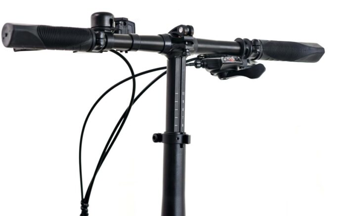 Ngoài ra, cổ xe còn được thiết kế tương thích với cơ chế gấp gọn của toàn bộ khung, đảm bảo khi gấp xe vẫn giữ được sự gọn gàng và chắc chắn. Đây là yếu tố quan trọng giúp Fornix F160 duy trì tính linh hoạt mà không làm ảnh hưởng đến độ bền tổng thể.