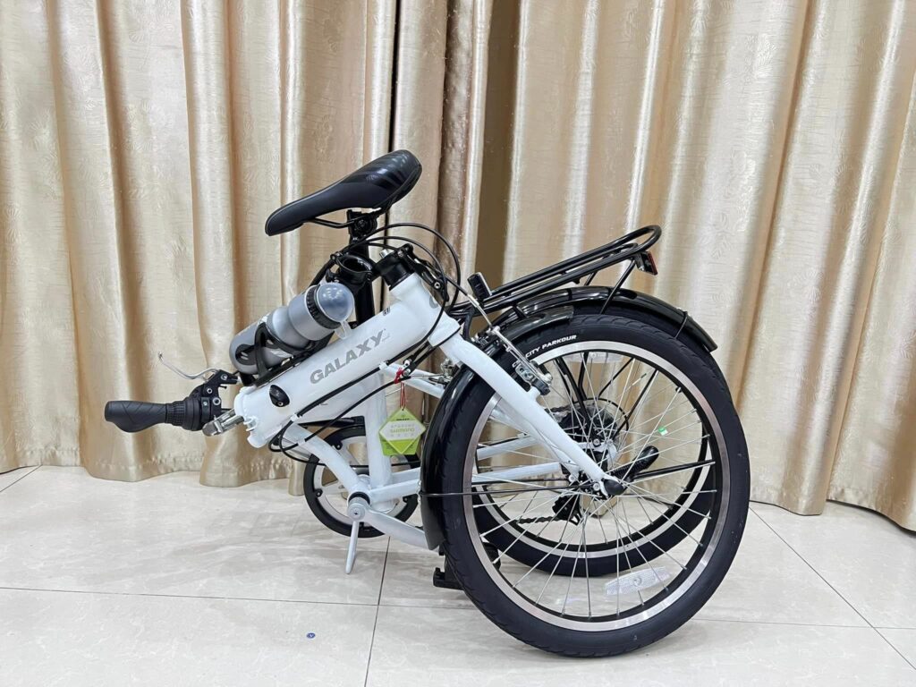 Xe đạp gấp Galaxy K2 chinh phục người dùng bằng tinh thần tối giản nhưng cực kỳ thực tế, sinh ra để phục vụ nhịp sống đô thị bận rộn. Thiết kế gấp thông minh cho phép thu gọn nhanh gọn, thao tác dứt khoát, thuận tiện mang theo khi đi ô tô, tàu điện hoặc cất gọn trong căn hộ nhỏ. Tổng thể xe hài hòa, gọn mắt, toát lên vẻ hiện đại chứ không hề cồng kềnh như nhiều mẫu xe gấp thông thường.Điểm đáng giá của Galaxy K2 nằm ở cảm giác vận hành: đạp êm, xe giữ thăng bằng tốt và phản hồi nhạy khi chuyển hướng. Dù dùng để đi làm, đi học hay dạo phố cuối tuần, Galaxy K2 vẫn đáp ứng trọn vẹn tiêu chí nhỏ gọn, dễ dùng, bền bỉ, tiện lợi, trở thành phương tiện di chuyển thông minh cho cuộc sống thành thị hiện đại.
