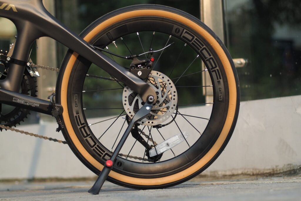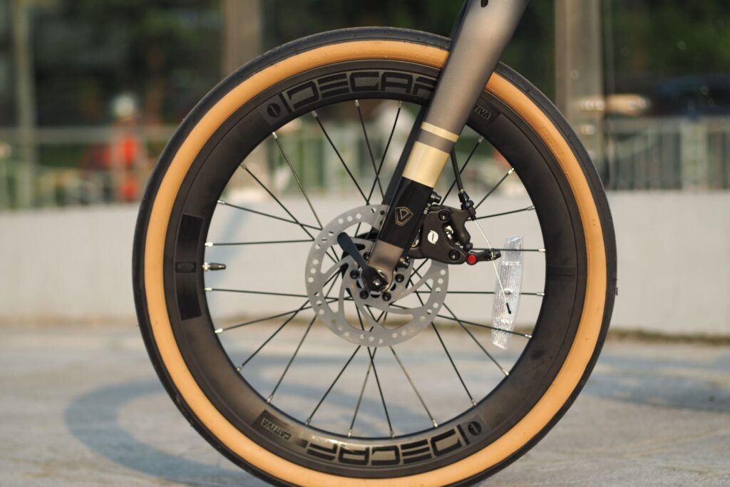 Bánh xe của xe đạp gấp Java Aria có kích thước phù hợp, giúp xe vừa linh hoạt trong không gian hẹp vừa đảm bảo độ ổn định khi di chuyển. Lốp xe có độ bám đường tốt, hạn chế trơn trượt khi đi trên mặt đường ướt hoặc gồ ghề. Thiết kế vành chắc chắn giúp bánh xe chịu lực tốt, phù hợp với nhiều điều kiện sử dụng khác nhau.