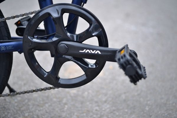 Đùi đĩa trên xe đạp gấp Java Zelo đóng vai trò quan trọng trong việc truyền lực từ chân người lái đến hệ thống truyền động. Thiết kế đùi đĩa chắc chắn, cân đối giúp lực đạp được truyền đi hiệu quả, hạn chế thất thoát năng lượng. Nhờ đó, người lái có thể đạp nhẹ hơn nhưng vẫn đạt được tốc độ mong muốn, đặc biệt hữu ích khi di chuyển quãng đường dài.