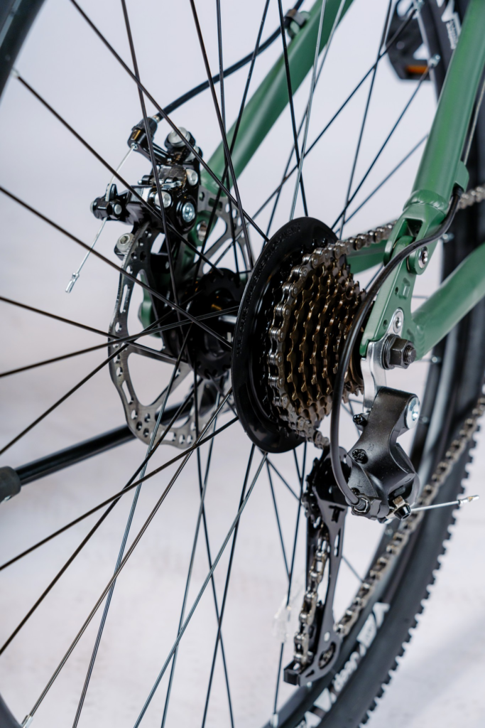 Bộ truyền động trên xe đạp gấp Jeep Optimus được thiết kế theo hướng đơn giản nhưng hiệu quả, đáp ứng tốt nhu cầu di chuyển hằng ngày. Các chi tiết như đùi đĩa, líp và xích được phối hợp nhịp nhàng, giúp quá trình đạp xe diễn ra mượt mà và ổn định. Khi tăng tốc hoặc duy trì tốc độ đều, xe phản hồi nhanh, không tạo cảm giác nặng chân.