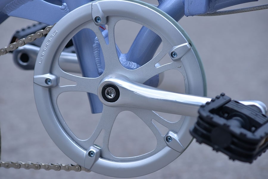 Đùi đĩa của xe đạp gấp Jiach K3V được thiết kế để tối ưu khả năng truyền lực khi đạp. Kết cấu chắc chắn giúp hạn chế tình trạng cong vênh trong quá trình sử dụng lâu dài. Khi người dùng tác động lực, lực đạp được truyền đều xuống hệ thống bánh xe.