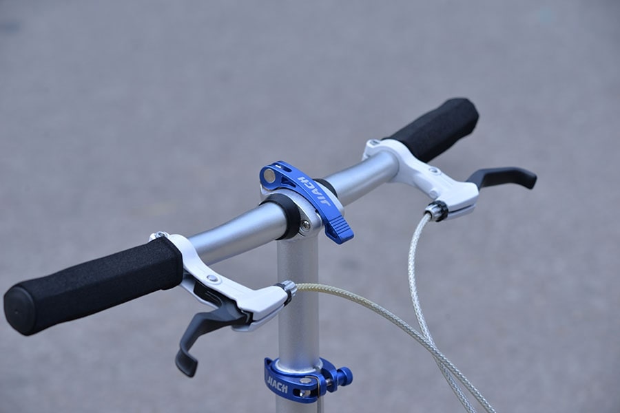Xe đạp gấp Jiach K3V được thiết kế với cơ chế gấp đơn giản, giúp người dùng thao tác nhanh chóng trong thời gian ngắn. Khi cần cất giữ hoặc mang theo, xe có thể thu gọn lại với kích thước nhỏ hơn nhiều so với trạng thái sử dụng. Điều này giúp việc đưa xe lên thang máy hoặc đặt trong cốp xe ô tô trở nên thuận tiện hơn.