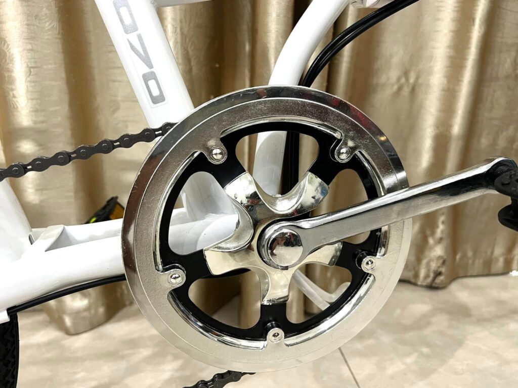 Phần đùi đĩa trên xe đạp gấp Nhật Fortina FT2070 được thiết kế cứng cáp, đảm bảo khả năng chịu lực tốt trong quá trình vận hành. Kết cấu đùi đĩa chắc chắn giúp hạn chế tình trạng cong vênh khi đạp mạnh, mang lại cảm giác an tâm cho người sử dụng. Thiết kế này giúp tối ưu hóa lực đạp, hỗ trợ người lái đạt được tốc độ ổn định mà không cần dùng quá nhiều sức.