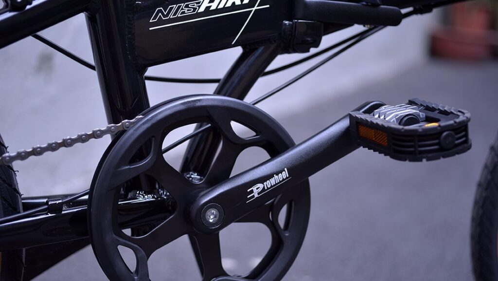Bộ truyền động của xe đạp gấp Nishiki Onando mang lại cảm giác vận hành liền mạch và dễ làm quen. Lực đạp được truyền đều từ bàn đạp đến bánh xe, hạn chế tình trạng khựng hoặc mất nhịp khi tăng tốc. Nhờ cấu trúc tối ưu, người dùng có thể duy trì tốc độ ổn định trong suốt quá trình di chuyển.