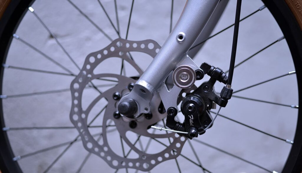 Hệ thống phanh đĩa trên xe đạp gấp Nishiki Onando mang lại khả năng kiểm soát tốc độ rõ ràng và chính xác. Khi bóp phanh, lực phản hồi nhanh, không tạo cảm giác trễ hoặc hụt. Điều này giúp người dùng chủ động xử lý các tình huống bất ngờ khi di chuyển trong đô thị.