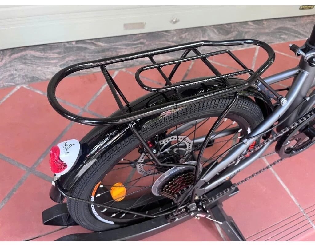 Baga phía sau của Ricoger RC50 được thiết kế theo hướng gọn nhẹ nhưng vẫn đáp ứng tốt nhu cầu chở đồ cơ bản. Người dùng có thể mang theo túi xách, balo hoặc các vật dụng cá nhân mà không làm ảnh hưởng đến sự cân đối của xe. Thiết kế baga hài hòa với tổng thể, giữ được vẻ ngoài gọn gàng của một chiếc xe đạp gấp.