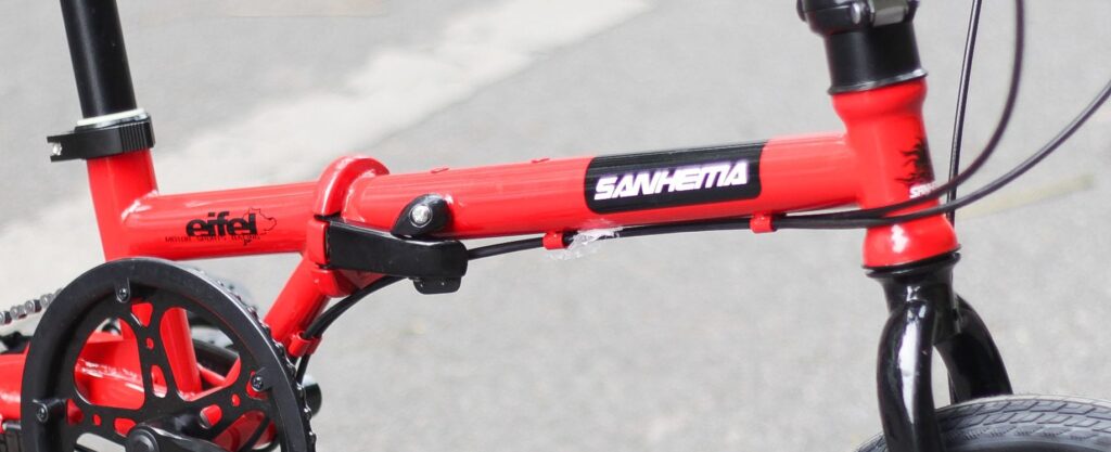 Khung sườn của xe đạp gấp Sanhema 16inch được thiết kế theo tiêu chí gọn nhẹ nhưng vẫn đảm bảo độ cứng vững cần thiết khi vận hành. Cấu trúc khung được gia công tỉ mỉ, các mối nối chắc chắn, hạn chế rung lắc khi di chuyển trên những đoạn đường không bằng phẳng. Thiết kế khung gấp thông minh cho phép người dùng thao tác gập – mở nhanh chóng chỉ trong vài bước đơn giản.