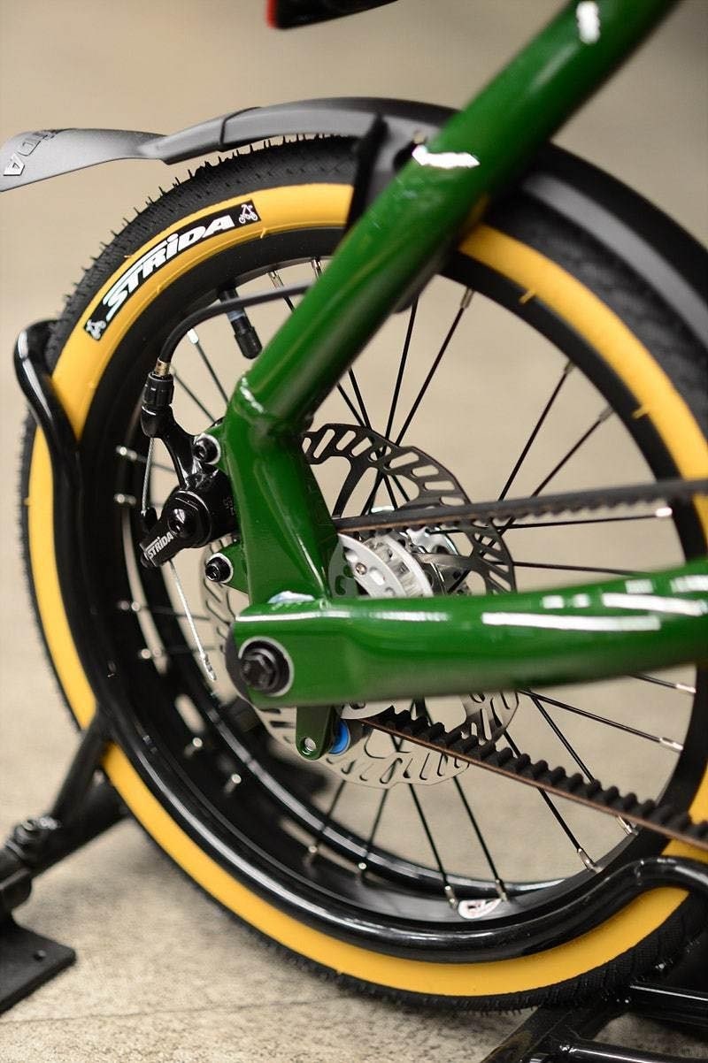 Bộ truyền động của xe đạp gấp STRIDA SX được thiết kế theo triết lý tối giản, tập trung vào sự bền bỉ và hiệu quả. Xe sử dụng dây đai thay cho xích truyền thống, giúp vận hành êm ái và sạch sẽ hơn. Hệ thống này hạn chế bám bẩn, không cần tra dầu thường xuyên, rất phù hợp với môi trường đô thị.