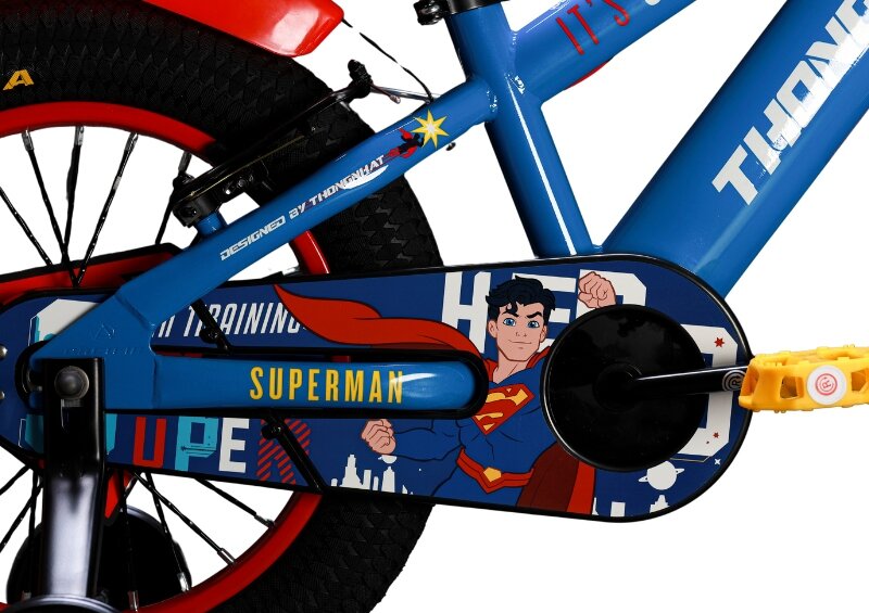 Họa tiết siêu anh hùng Superman trên xe được in sắc nét, chống phai màu và bám chắc trên khung, bánh xe và bộ che sên. Màu sắc tươi sáng, nổi bật không chỉ thẩm mỹ mà còn giúp bé hào hứng mỗi khi ra ngoài tập luyện. Các chi tiết trang trí tinh tế tạo điểm nhấn riêng biệt, giúp bé cảm nhận niềm vui và sự hứng thú khi chơi cùng chiếc xe của mình.