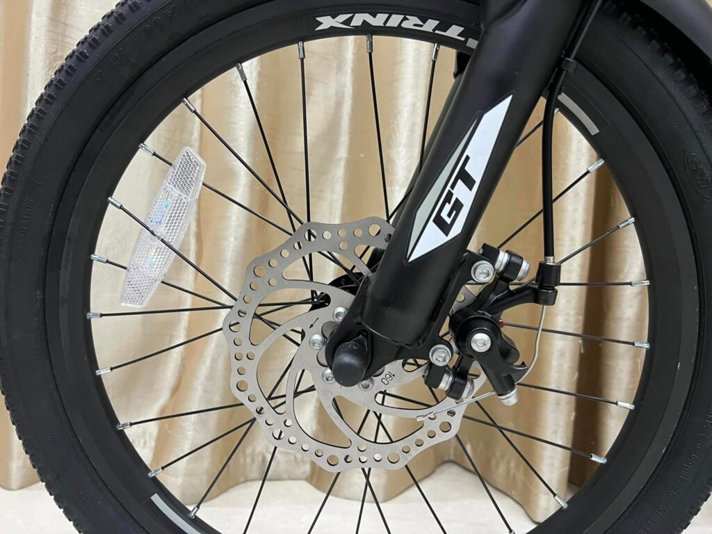 Hệ thống phanh đĩa trước và sau của Trinx GT20 đảm bảo khả năng dừng xe nhanh chóng trong mọi tình huống. Phanh đĩa hoạt động hiệu quả ngay cả khi đường ướt, hạn chế trượt bánh và tăng độ an toàn cho bé.