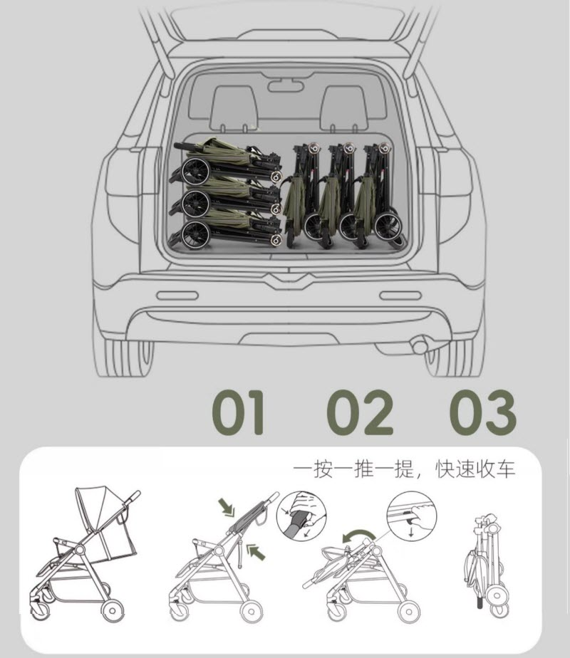 Ba mẹ có thể mang theo xe mà không cần lo lắng về sự cồng kềnh hay nặng nhọc. Tính năng này đặc biệt hữu ích cho gia đình hay di chuyển. Đây là điểm cộng lớn trong dòng xe đẩy cho bé từ sơ sinh.