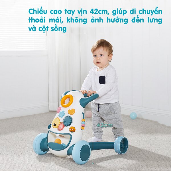 Sản phẩm được thiết kế thân thiện với người dùng, giúp ba mẹ thao tác nhanh chóng trong quá trình sử dụng. Việc điều chỉnh độ cao có thể thực hiện đơn giản, phù hợp với nhiều giai đoạn phát triển khác nhau của bé. Xe vận hành nhẹ nhàng, không gây tiếng ồn lớn khi di chuyển trong nhà.
