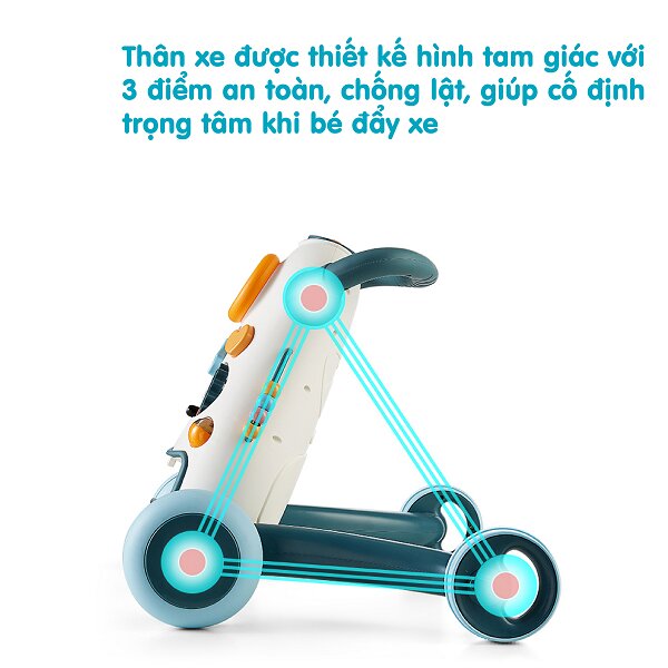 Bề mặt sản phẩm được xử lý mịn, giảm thiểu các cạnh sắc có thể gây trầy xước cho bé. Các chi tiết được lắp ráp chắc chắn, đảm bảo độ bền trong quá trình sử dụng lâu dài. Điều này giúp ba mẹ yên tâm hơn khi cho bé tập đi mỗi ngày. Sự chỉn chu trong từng chi tiết nhỏ tạo nên độ tin cậy cao cho sản phẩm.